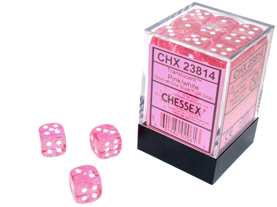 Chessex Dice: Translucent: 12mm D6 Pink/White (36)