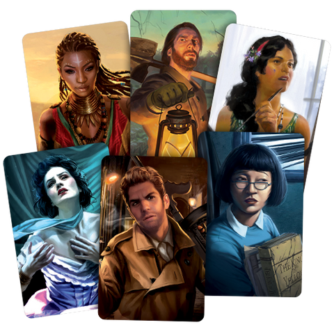 Along with its new scenarios and encounter cards, The Path to Carcosa introduces six new investigators and sixty-two player cards (including a complete playset of each) that afford you new ways to explore and enjoy the game—even as they challenge you to overcome new weaknesses.